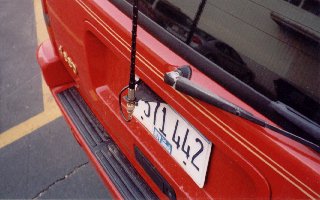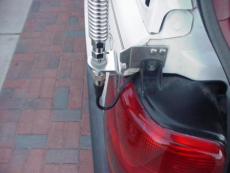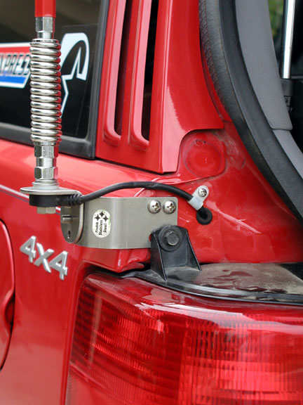 I would have added a heavy duty spring to keep from bending the bracket or snapping the antenna on trees